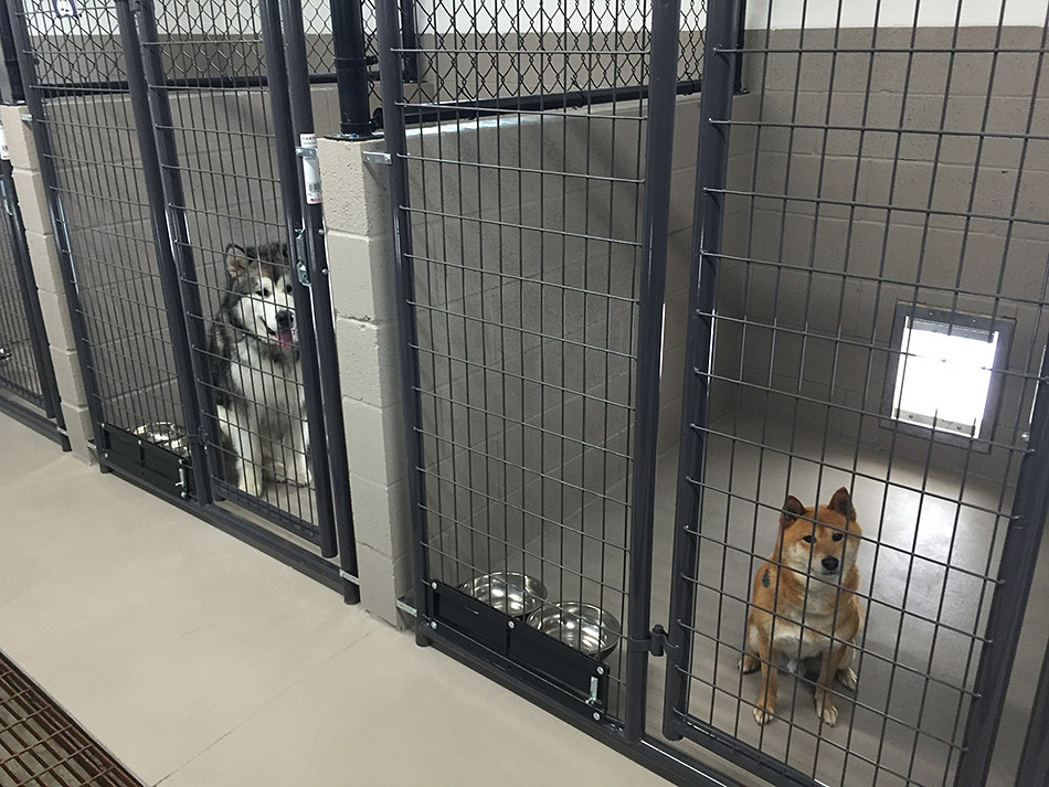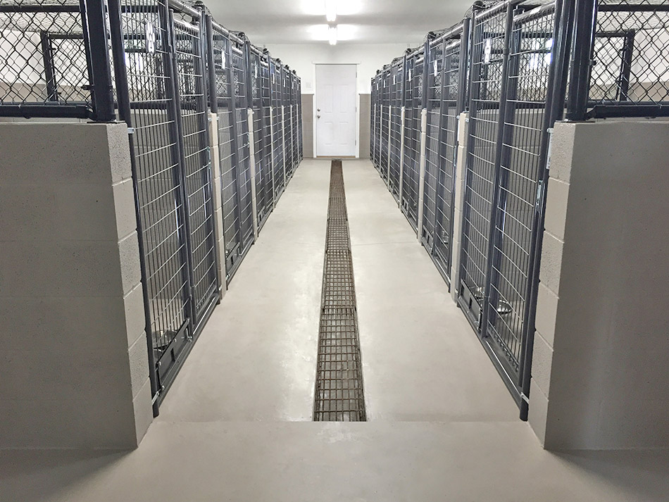 The runs have fully sealed concrete with concrete dividers to avoid fence fighting and cross contamination, while still offering your dog a wide view. This important feature is not found on most outdoor sections of boarding kennels.