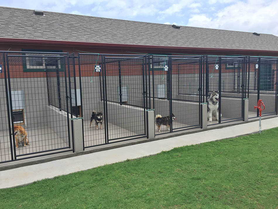 We offer superior large indoor/outdoor runs. Our indoor kennels are 5’ x 6’ and the outdoor run is 5’ x 10’. They are attached by a doggie door, which is open 24/7, so your dog has 80 square feet of space to access.